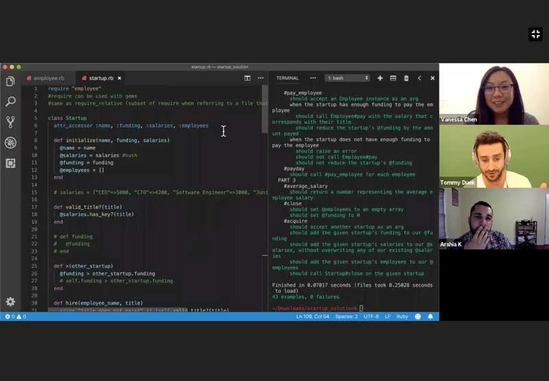 A school using the Income Share Agreement (ISA) model only earns tuition after you get a job, and in that case, as a percentage of your salary. Structuring App Academy around your successful career change (and making our very survival dependent on it) drives every decision we make in designing and operating our school.