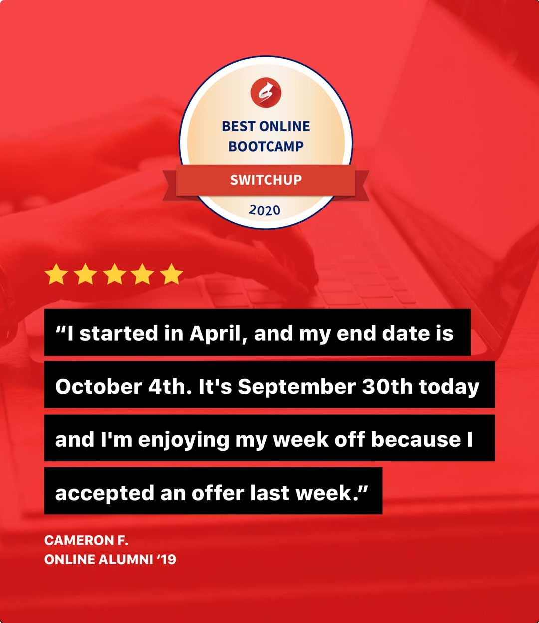 App Academy is proud to be ranked #1 out of more than 50 online schools. We’re even more proud that over 800 of our graduates have rated us 4.7/5.