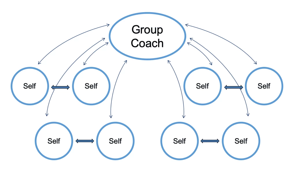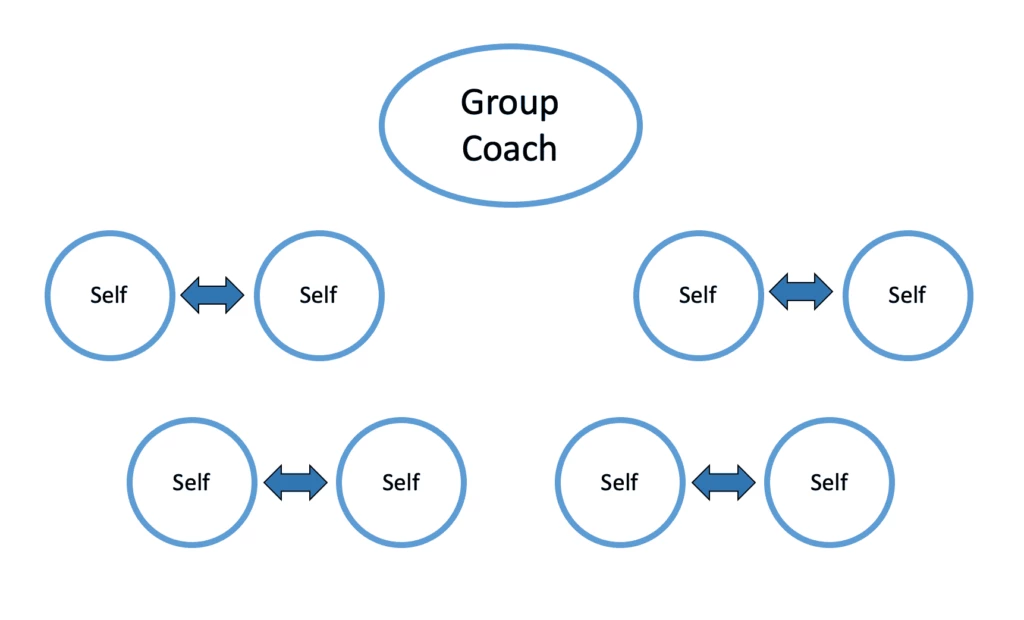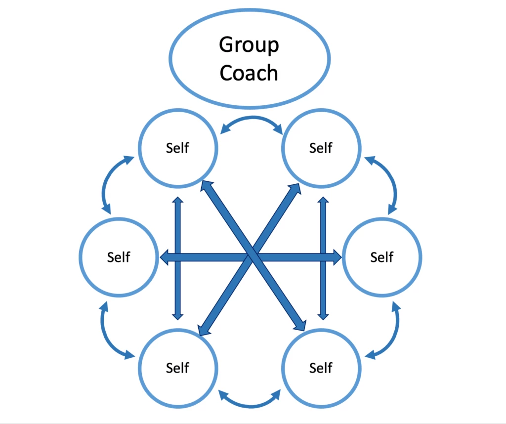 It means that, in any given Group Coaching session, the Group Coach doesn’t have to talk for more than 5-10 minutes in the beginning. Then the group starts and runs on it’s own energy!