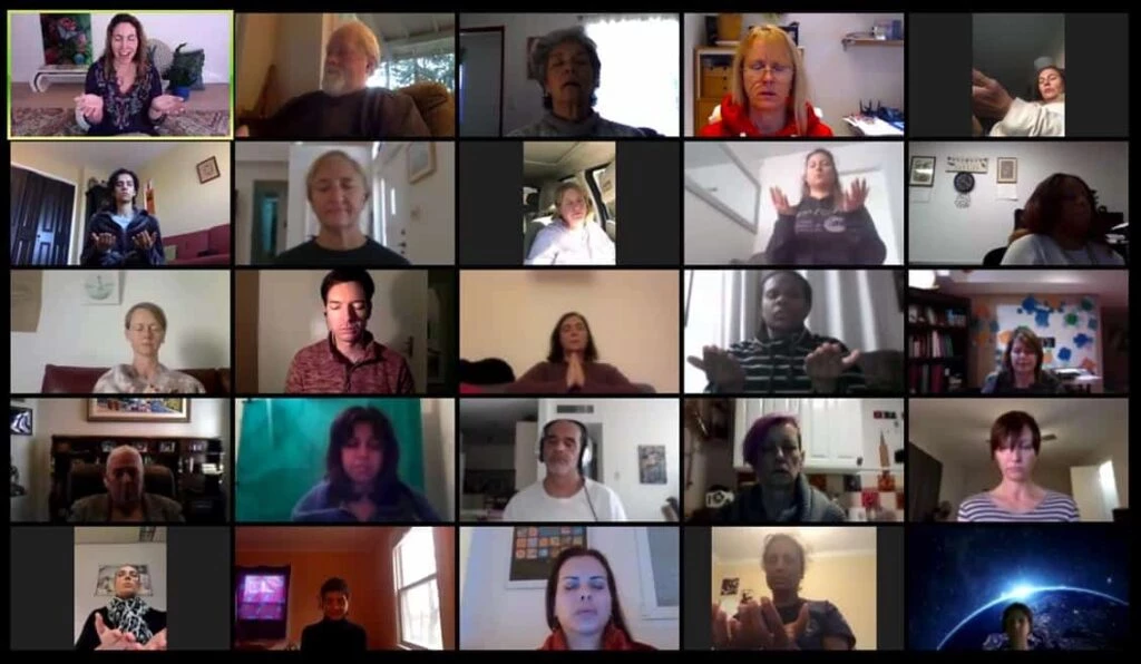 It’s always so touching for me to see the faces of my participants, each in their own corner of the world, with their eyes closed, meditating with me. Here’s what my class looked like recently.